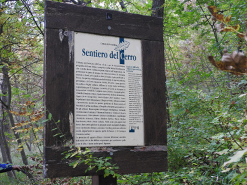 La nostra passeggiata di Domenica 23 ottobre parte da Perticara, da dove inizia un ampio sentiero in mezzo ad un bosco di Cerri e Pini neri, accompagnato da cartelli illustrativi che raccontano le caratteristiche delle specie che incontriamo. Lungo il percorso anche alcune sculture in pietra e in metallo.