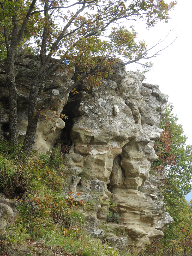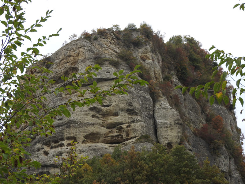 Il sentiero si snoda in un bosco misto di Carpini, Querce, Frassini e Castagni con improvvise aperture sul bel paesaggio collinare e sulle rocce dalle forme suggestive.