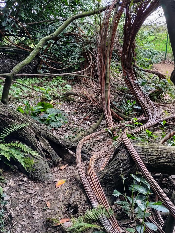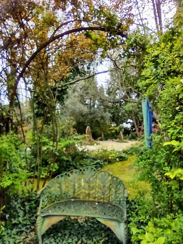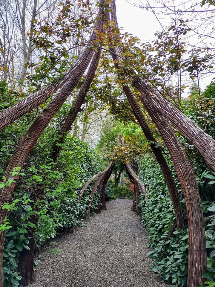 Nella campagna bolognese, il “Giardino delle Stanze sonore” è nato circa 20 anni fa, senza un progetto preesistente, dalla passione e dalla curiosità per il verde dall’artista simbolista Patrizia Merendi. L’ispirazione ai giardini giapponesi e all’architettura gotica è evidente fin dall’ingresso: ad accogliere i visitatori una installazione di land art in rami di salice, che riecheggia gli archi a sesto acuto delle cattedrali gotiche, e indirizza lo sguardo verso l’interno ombroso del giardino. Ma prima di varcarne la soglia, in fondo a un alto corridoio di siepi miste informali che isolano dal contesto della campagna circostante, un rivolo d’acqua attraversato da due lastre di pietra, invita ad ascoltare il fruscio leggero delle foglie e il mormorio dell’acqua che scorre.